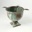 Placer askebægeret på et stabilt, fladt underlag. Brug rammens fire riste til at hvile cigarer sikkert. Tøm skålen jævnligt for aske og gløder for at bevare både funktion og finish. Hvis brugt i lidt udendørs miljø, undgå ekstrem vind eller direkte regn for at bevare patina-looket.